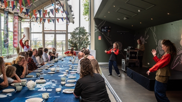 Bij het ZING ONTBIJT telt elke stem, hoe die ook klinkt. Stil of luid, schor of helder, bescheiden of krachtig. Samen zijn we vervlochten, of we nu de boter doorgeven of een klank zingen. Met dit theatrale concert wakkeren de King Sisters een oeroude drang naar gemeenschap, samenhang en harmonie aan. Vrolijk en speels wordt duidelijk dat we niet alleen invloed op elkaar hebben, maar ook afhankelijk van elkaar zijn. Iets wat in deze tijd van individualisering en polarisatie vaak vergeten wordt. Samen vormen we de puzzelstukjes van een onvoorstelbaar groot systeem. Lees meer.